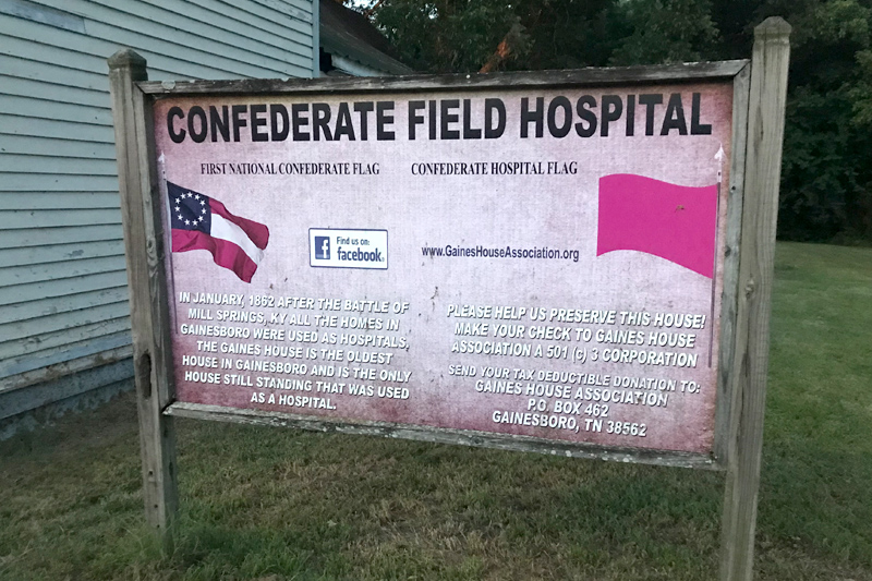 The Gaines House sits delapidated and unassuming in the historic district of Gainesboro, a small town in central Tennessee east of Nashville. It's only indicator that something is different about the house is a placard to the side of the house explaining that it's a former Civil War field hospital, along with information on the preservation effort by the Gaines House Association. Beyond that, it's not immediately apparent that this house ought to stick out from its surrounding houses.