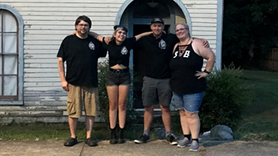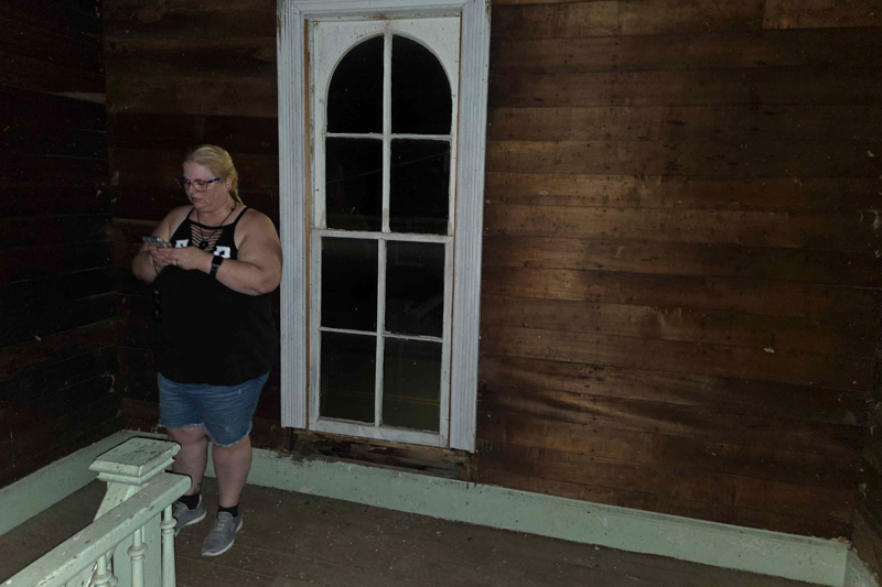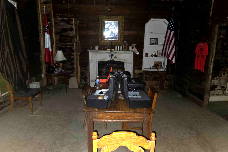 Following that, we opted to take a 30-minute break to cool off. Since this was the end of July in a house without any air conditioning, we were starting to get overheated and exhausted. Before leaving the house, though, we set out a voice recorder to capture audio while we were out of the house. This kind of experiment is called abandonment, and investigators often employ video and audio to see what happens when a reportedly haunted location is empty (we did this at the Old Pickens County Jail too). To our surprise, we managed to capture quite a few things. While there were certainly individual knocks and taps throughout, toward the end of our 30 minutes, the voice recorder captured a solid minute and a half of what sounds like someone rummaging around the room, picking up and putting things down on the table, moving chairs around, and walking around. This audio clip really does need the volume turned up and your headphones pressed into your head to really appreciate it fully. It's shocking how much happens in this clip.